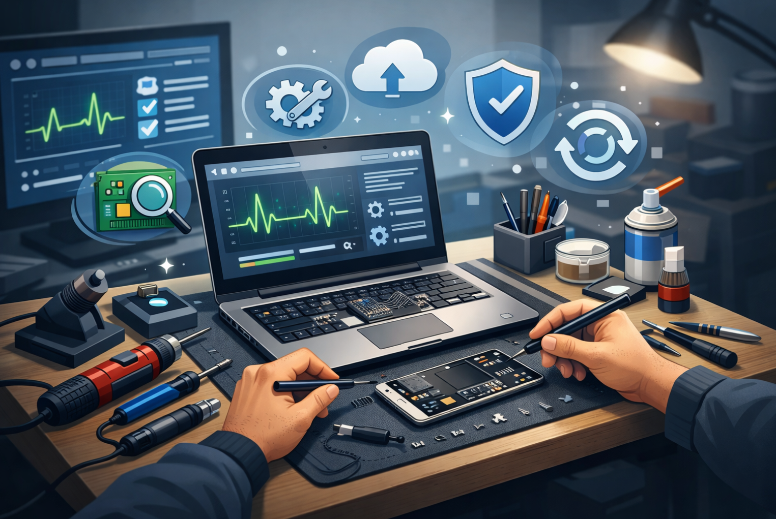 Co nas wyróżnia: dokładna diagnostyka i testy po naprawie profesjonalne wyposażenie warsztatu naprawy podzespołowe i regeneracja obsługa wielu typów urządzeń w jednym miejscu możliwość serwisu mobilnego jasna komunikacja i dokumentacja wykonanych prac Naszym celem jest długotrwała sprawność Twojego sprzętu i pewność, że działa bezpiecznie oraz niezawodnie.